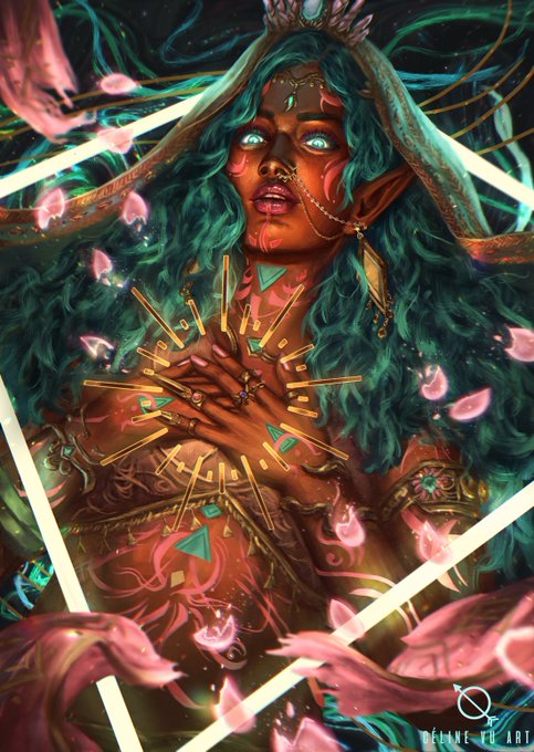 I tend to miss hashtags nowadays so here’s my contribution to #artistsontwitter ✨ Hiya, my name is Céline and I am an illustrator who likes to draw all kinds of fantasy ladies 😊😵💫