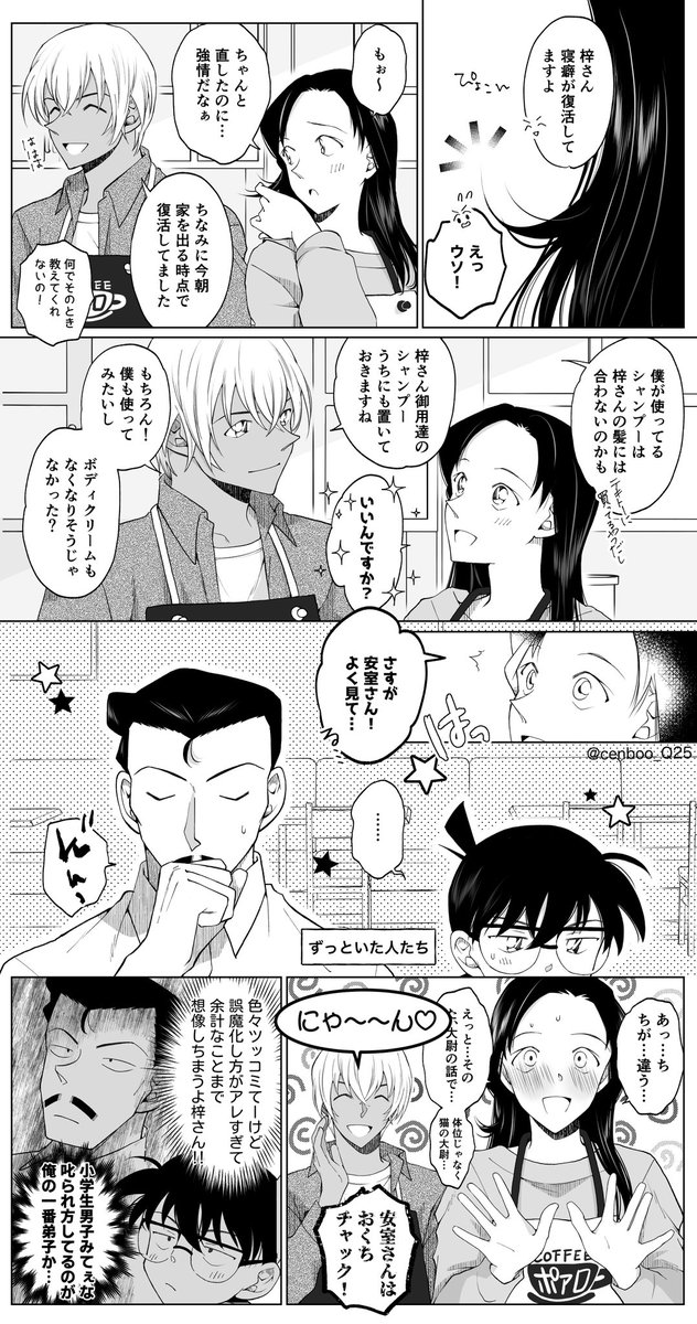 付き合ってるあむあず コナソくんとおっちゃんは黙っててくれるけど多分すぐ周囲バレする