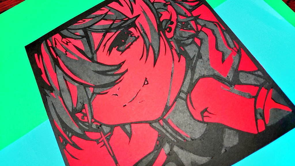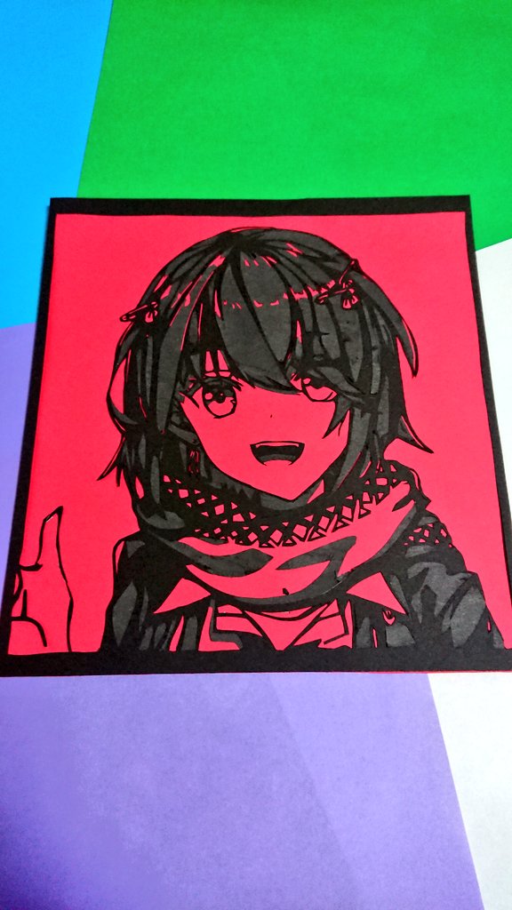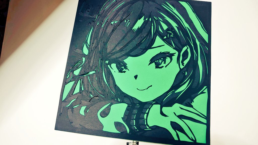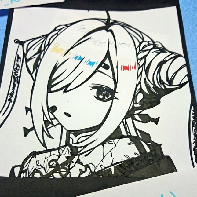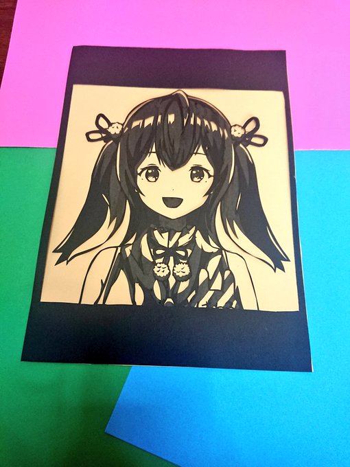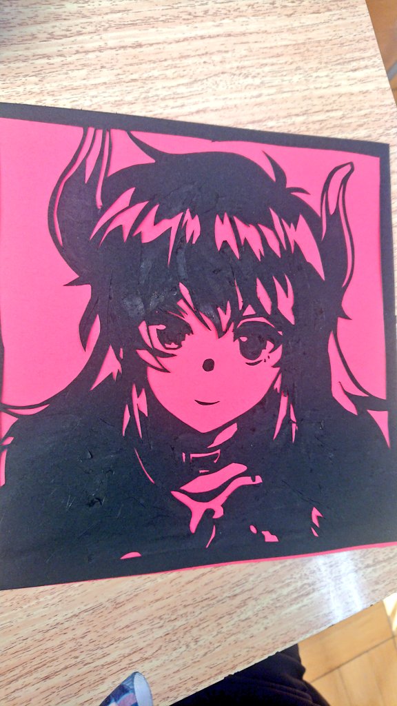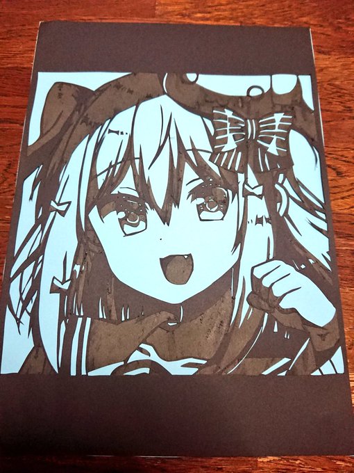 #るしあ絵らい #切り絵 完成したので、魔王に切り絵を献上します。どうぞお納めください。 応援してます、頑張ってください。