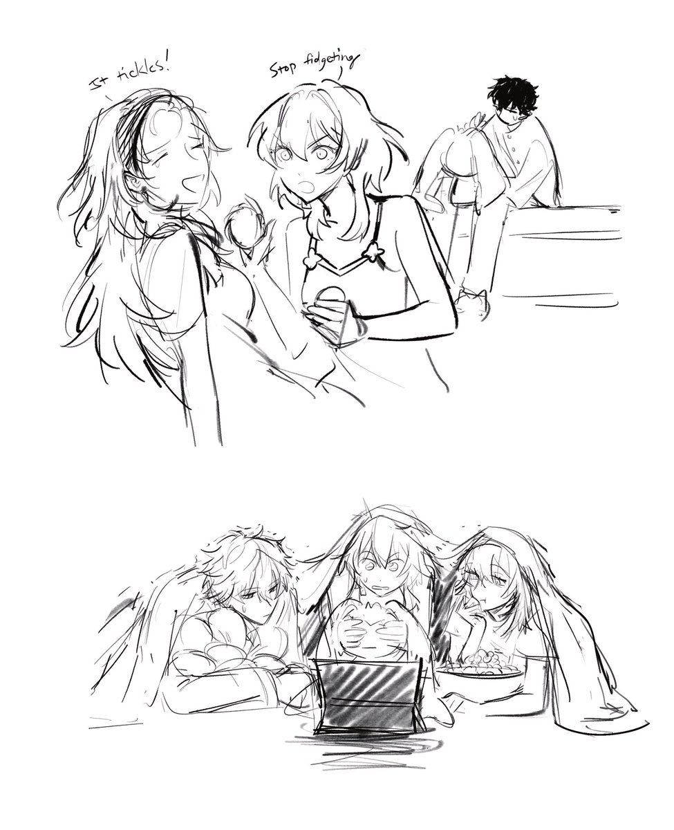 was thinking about the similar experiences between the main trio and wanted to draw something fluffy