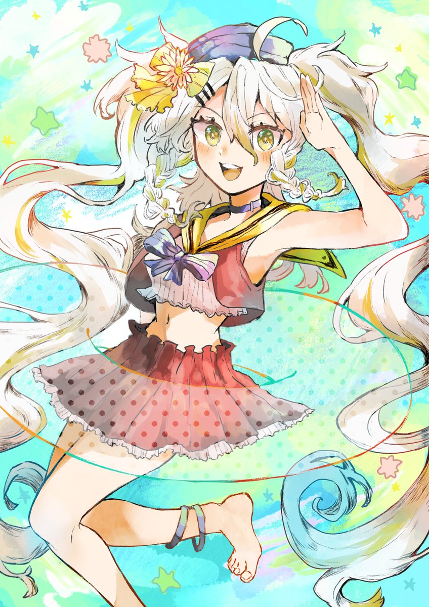 #カモミあーと #鴨見カモミ 早速カモちゃんの配布ブラシで描いてみた!凄く使いやすい〜✨🦆 (勝手ながらマリンなイメージの服を着てもらいました💦)