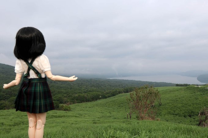 #今夜のドール撮影120分一本勝負 お題【みわたす】(過去) 山中湖をみわたす😳 つことで今日は茗ちゃん連れて山中湖行ってたんですが天気悪くてなんも見えませんでした😭 梅雨時はこれだから・・・😩