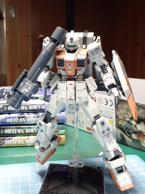 陸ジムにダメージ表現、デカール貼り終わりました! 陸戦型ジム[WR装備]にしてみました!カッコイイ!!!陸ガンくんからウェポンラック借りて来ましたw #ガンプラ #ガンプラ好きな人と繋がりたい