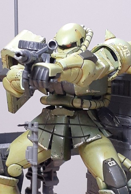 #嵐の中で輝く杯 #完成 [MSー06JZAKUII] ザクIIJ型完成しました。 主に市街地戦をしているイメージです。 特に3枚目の写真とスパイクアーマーのオイル汚れやザビ垂れを工夫しました! #ガンプラ好きと繋がりたい #ガンプラの画像貼るとRTされると聞いて