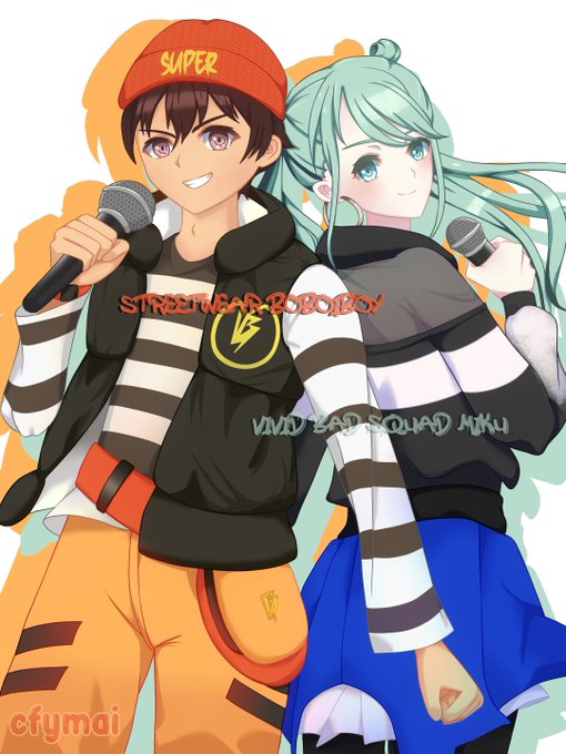 『準備はいいかな?ボボイボーイ』 『いつでもいいよミクさん!歌おう!』 Streewear #Boboiboy and VBS Miku! Ever since I saw the new outfits I can't help but to draw this crossover! Imagine Kokotaim getting into Street Sekai! #prsk_FA #BoBoiBoyKembaliAidilfitri