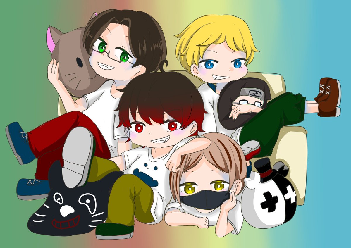 #イラスト #デジタル #TOP4 服にメンバーカラー入れたのがお気に入り。キヨさんは上手くかけたと思ってる。