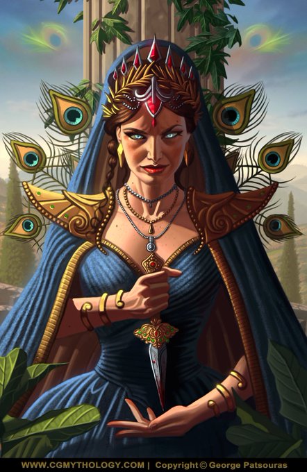 Portrait of Hera from Greek Mythology. I wanted her to appear mysterious and deadly with this piece. Enjoy! #ArtistOnTwitter, #fantasyart, #fantasy, #GreekArt, #Greek, #mythology, #art, #illustration, #digitalart, #digitalpainting