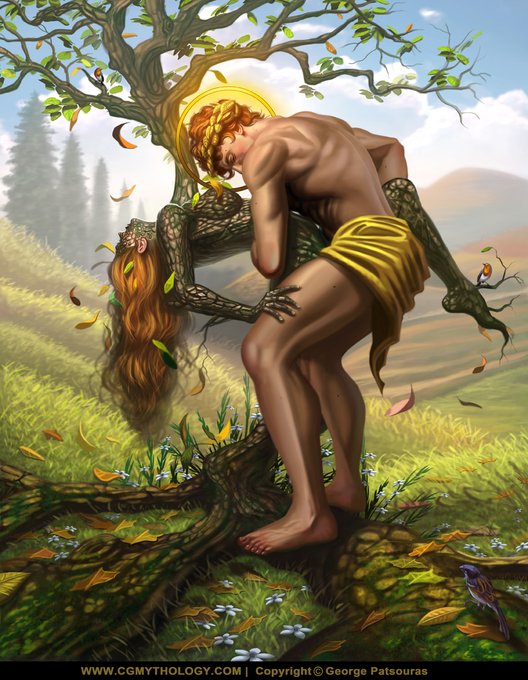 "Apollo and Daphne". New personal illustration, please enjoy! #artistsontwitter , #HumanArtists , #HumanArtist , #fantasy , #fantasyart
