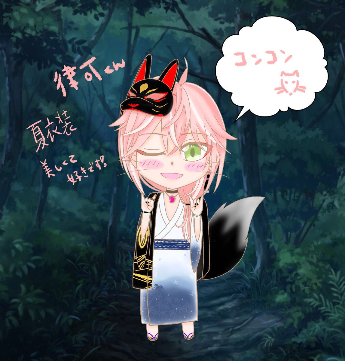 3 24 夏衣装美しくて凄く良かったです! 好きです! かってに尻尾とおひげをはやしました。 #ホロスタ夏衣装 #律可 #りつあーと 20/08/09 19:22