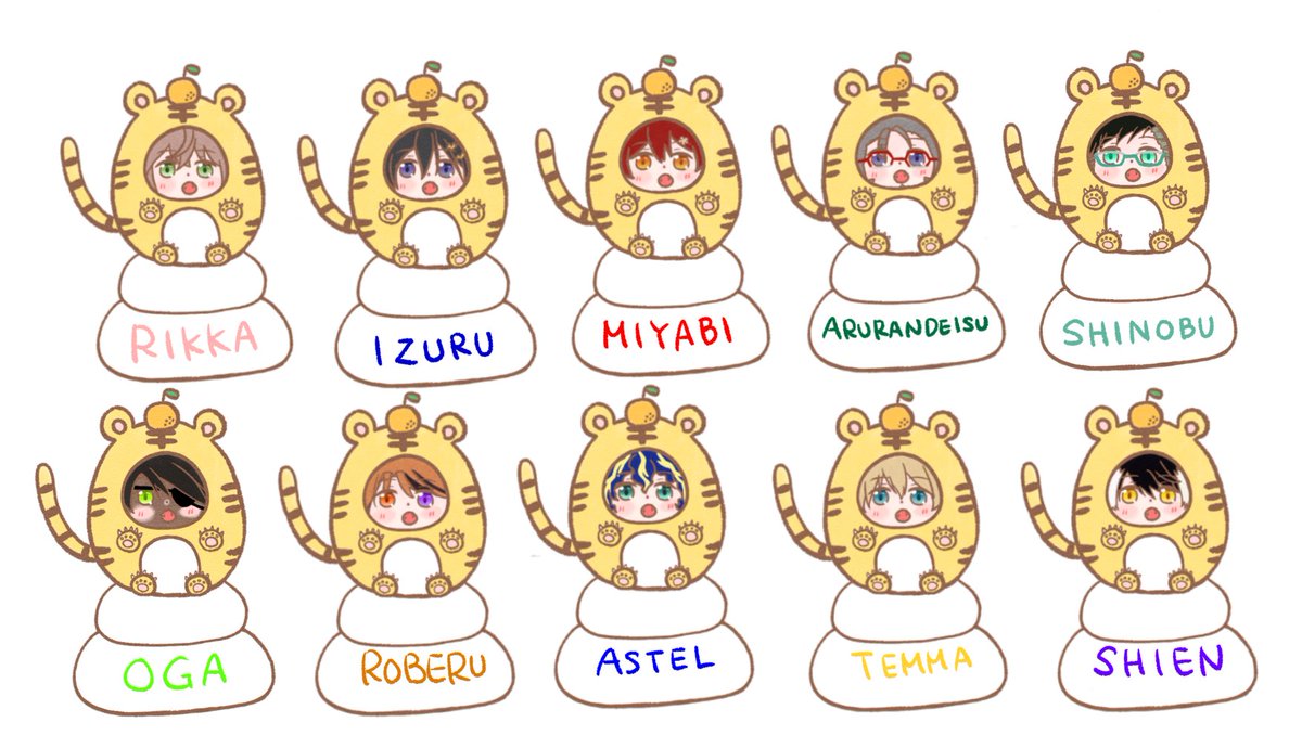 あけましておめでとうございます。 の絵を描きました。 ホロスターズver. 2枚目はシノヴさんも入れて。 #みやびじゅつ #イヅル描いたぞ #アランの画廊 #りつあーと #アステル絵ダ #騎士絵画 #描クテル #シ絵ン #オウ画 #ホロスターズ