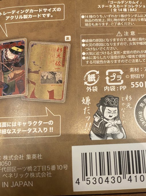 182 907 ステータスカードのパッケージの上にアシリパさんのカードを載せると、アシリパさんとそのスタンド杉元」の構図も楽しめるヨ 21/05/24 23:22