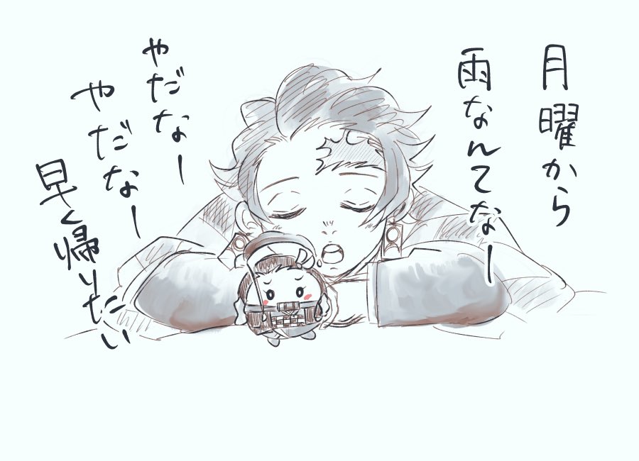 はよ帰りたい気持ちの落書き ダウナ〜〜〜ブル〜〜〜😑 午後の業務開始します…