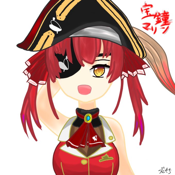 お題箱<マリン船長描け船長描けAhoy!… マリン船長描きました! 新しい描き方で描いてみたけど、こっちも好きやけんなぁ… #ホロライブ #宝鐘マリン #マリンのお宝