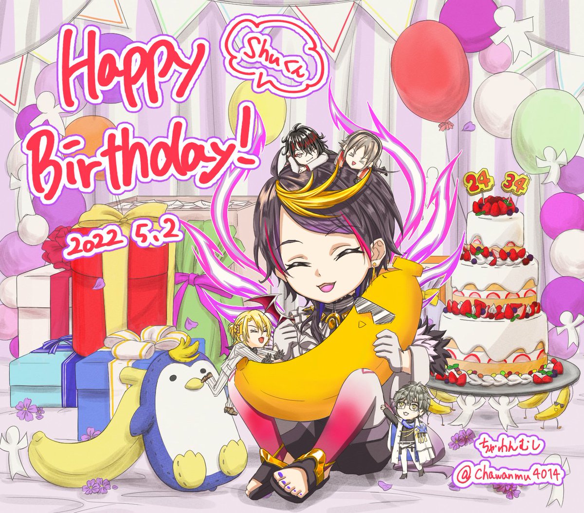 シュウくんお誕生日おめでとう~🥳🥳いつも楽しい配信ありがとう!これからも応援してます! #YaminoArt #Birthdeyy2022