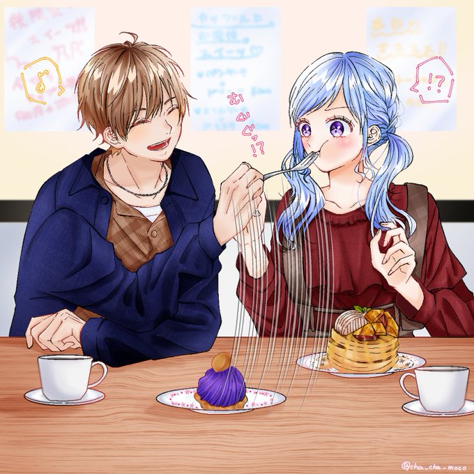 0 3 秋限定スイーツを食べにきた2人🍰🧁 #イラスト #カップルイラスト 22/10/21 17:17