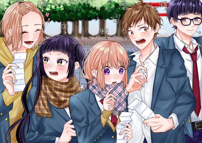 66 471 学校帰りにみんなで遅めのおみくじ #イラスト #HoneyWorks #ハニワ美術部 23/01/13 17:18
