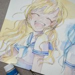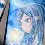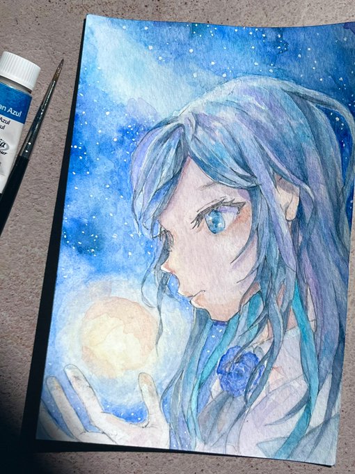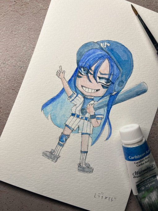 広島のフラスタ企画💎 ご依頼絵描かせていただきました🙏 こちらが原画です ハルタビの次は MARSへの夏の旅へ💙 ちびっこAdoちゃんがご案内しまーす🩵 広島フラスタ参加は引用へ💎 透明水彩 #Adoart twitter.com/daivish0115/st…