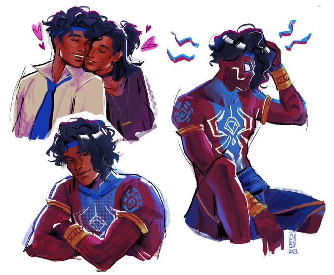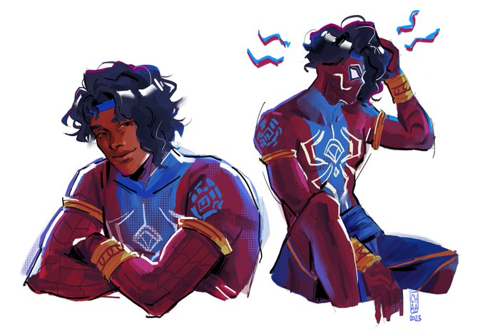 10 years later spiderman india is living his best life knowing both gayatri and inspector singh are alive. Also yea those are henna designs on his arms and legs #AcrossTheSpiderVerse #PavitrPrabhakar #fanart #myart #digitalart