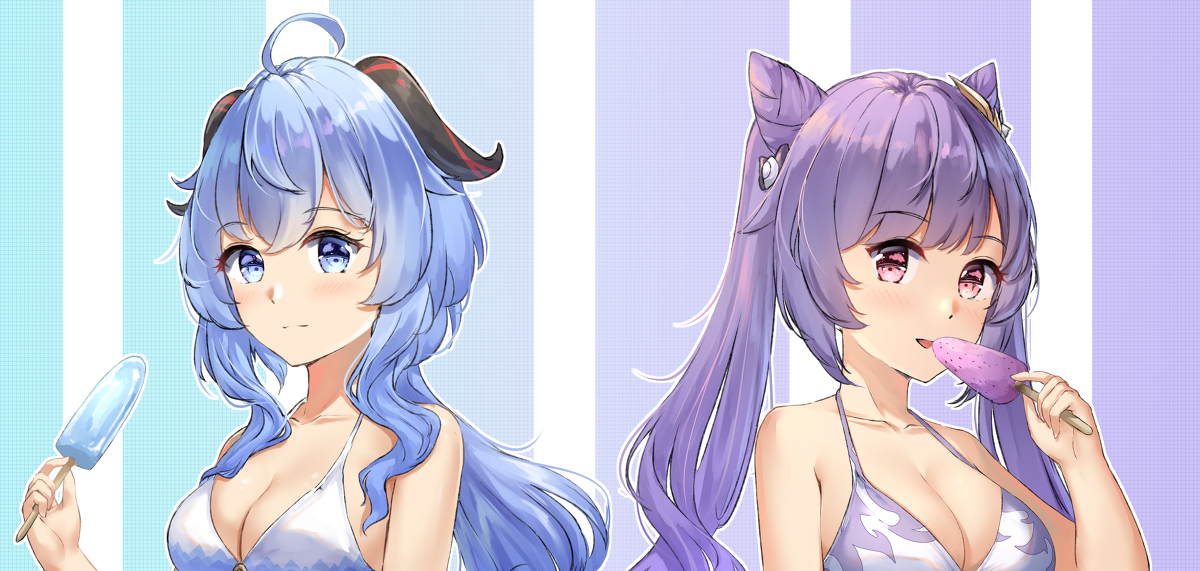 (✪ω✪) #甘雨(原神) #甘雨 #原神 #刻晴 #水着 pixiv.net/artworks/91326…