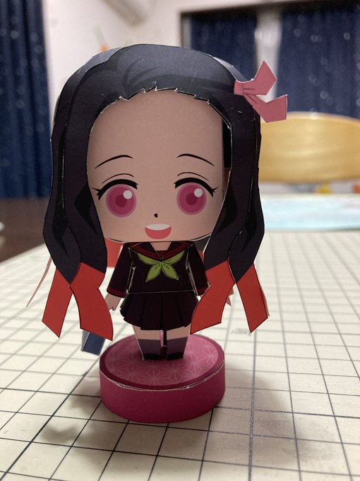 明日休みなのをいい事に組み立てまでやっちゃったよ…。 遊郭編で一番印象強かった。 #竈門禰󠄀豆子 #鬼滅の刃 #ペーパークラフト
