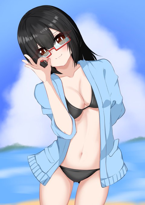 3 8 38日目、メガネっ娘ちゃん「日焼け止め塗って!」 #100日チャレンジ #ビキニの日 #メガネ #イラスト 23/07/05 22:10
