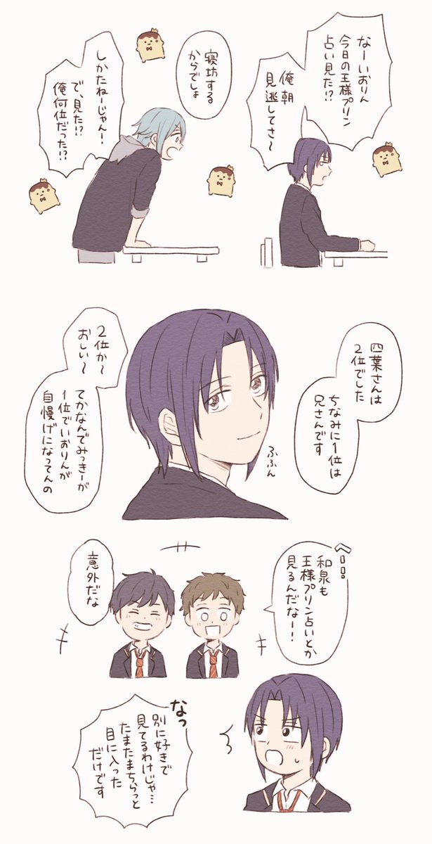 218 1808 ⚠️モブが出ます アイナナ寮の朝、王様プリン占いを見るのが習慣になってたらかわいいな〜という話🍮 22/07/24 22:49