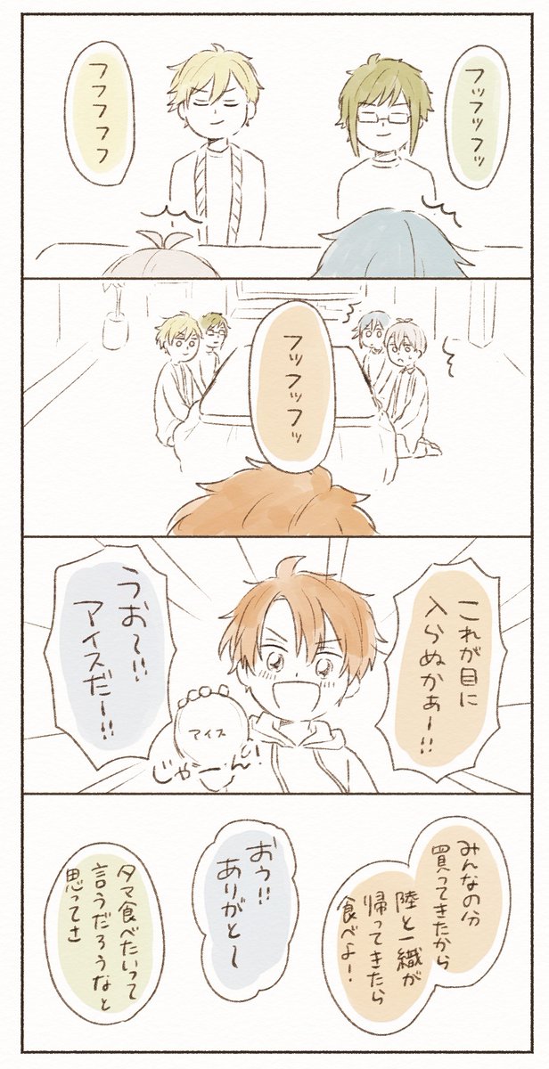 ①一織くんと環くんの身長が伸びた話。以前あげたらくがき(引用ツイ)をちゃんと描いたもの(内容はほぼ一緒です) twitter.com/chabo_mzmz/sta…