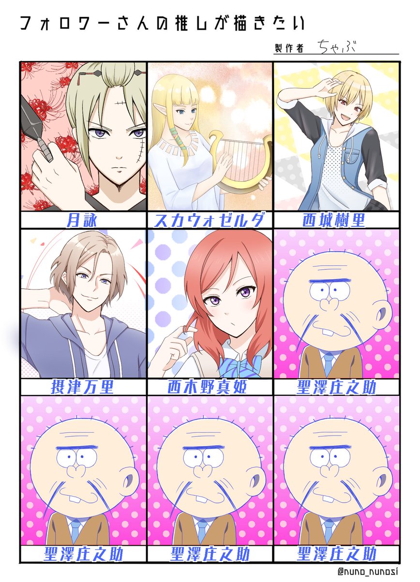 タグ反応ありがとうございました!見事にジャンルバラバラで楽しかったです🙌 #フォロワーさんの推しが描きたい