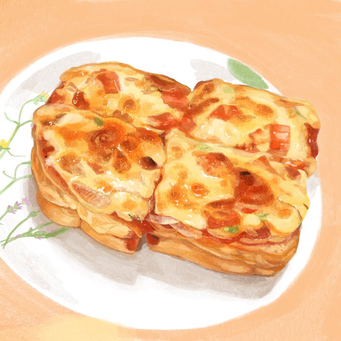 6 27 コメダ珈琲さんのたっぷりたまごのピザトーストを描きました🍕✏️ #食べ物イラスト #illustration 21/10/28 19:45