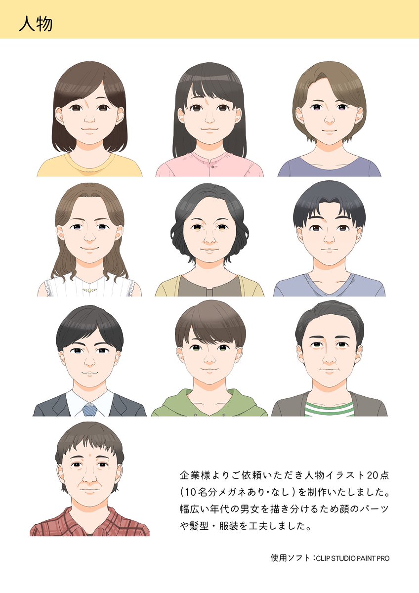 \お仕事紹介/ 企業様よりご依頼いただき人物イラストを制作いたしました✏️ 普段あまり描かない年代の方もたくさん描かせていただきとても新鮮でした☺️✨ #イラスト #お仕事募集中
