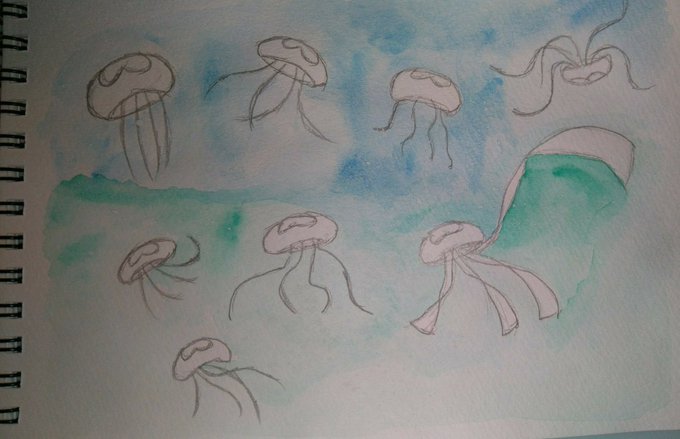 #落描き #固形水彩絵具 #くらげ 何かくらげ描いてた… sketch.pixiv.net/items/32528944…