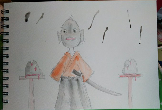 #固形水彩絵具 #落描き #まぐろ テーマ『まぐろ』 まぐろのつもりです… sketch.pixiv.net/items/55491010…