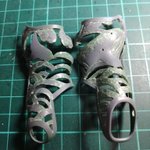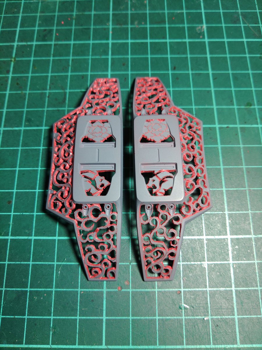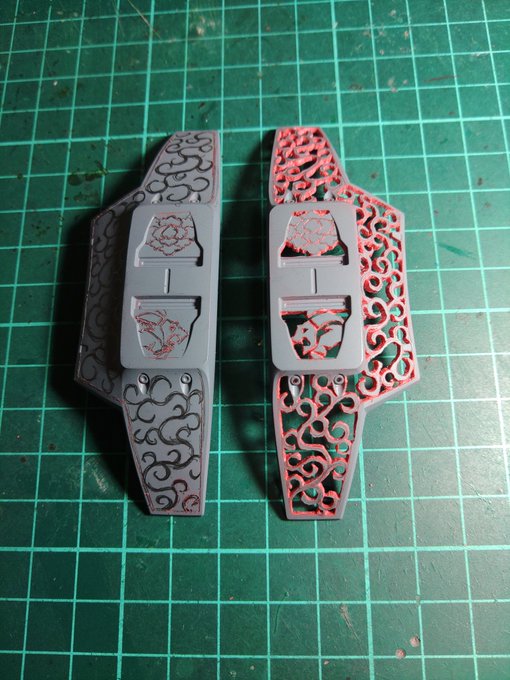 ようやく両肩シールド彫れた…。 千里の道も一歩ぐらい。 #ガンプラ