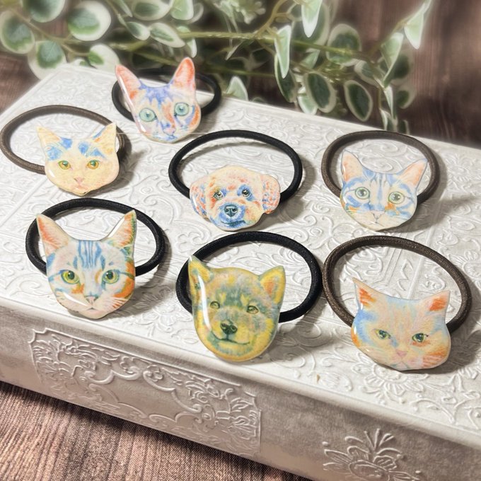 動物油絵シリーズのヘアゴムです🐶🐱💓Thingsly沖縄店様に追加納品で送らせて頂きました❣️ ワンちゃんネコちゃんの他に亀さんやうさぎさんも販売させて頂いております🐢🐰💓 #ド直球に言いますがフォローしてください #お盆休みはフォロワーさんが増えるらしい #ハンドメイド好きさんと繋がりたい
