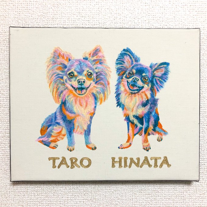 2匹のチワワさんのカラフル油絵似顔絵をご注文頂きました🐶💗満面の笑顔が可愛い…❣️どんな嬉しい事があったのでしょう💓色々想像して楽しみながら描かせて頂きました☺️✨ ご注文頂きましてありがとうございました🙇♀️💗 油絵のご注文はこちらtanomake.com/shops/59 #イラスト好きさんと繋がりたい