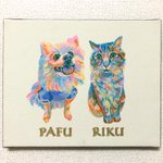 フサフサぁ〜な可愛い2匹のカラフル油絵似顔絵のご注文を頂きました🐶🐱💗 ご注文ありがとうございました🙇♀️💗 只今10〜20%OFFになるクーポンが出ております❣️✨😳明後日24日まで‼️🏃♀️💨 似顔絵受注のサイトtanomake.com/shops/59より是非この機会にご利用下さい🥰💗 #イラスト好きな人と繋がりたい
