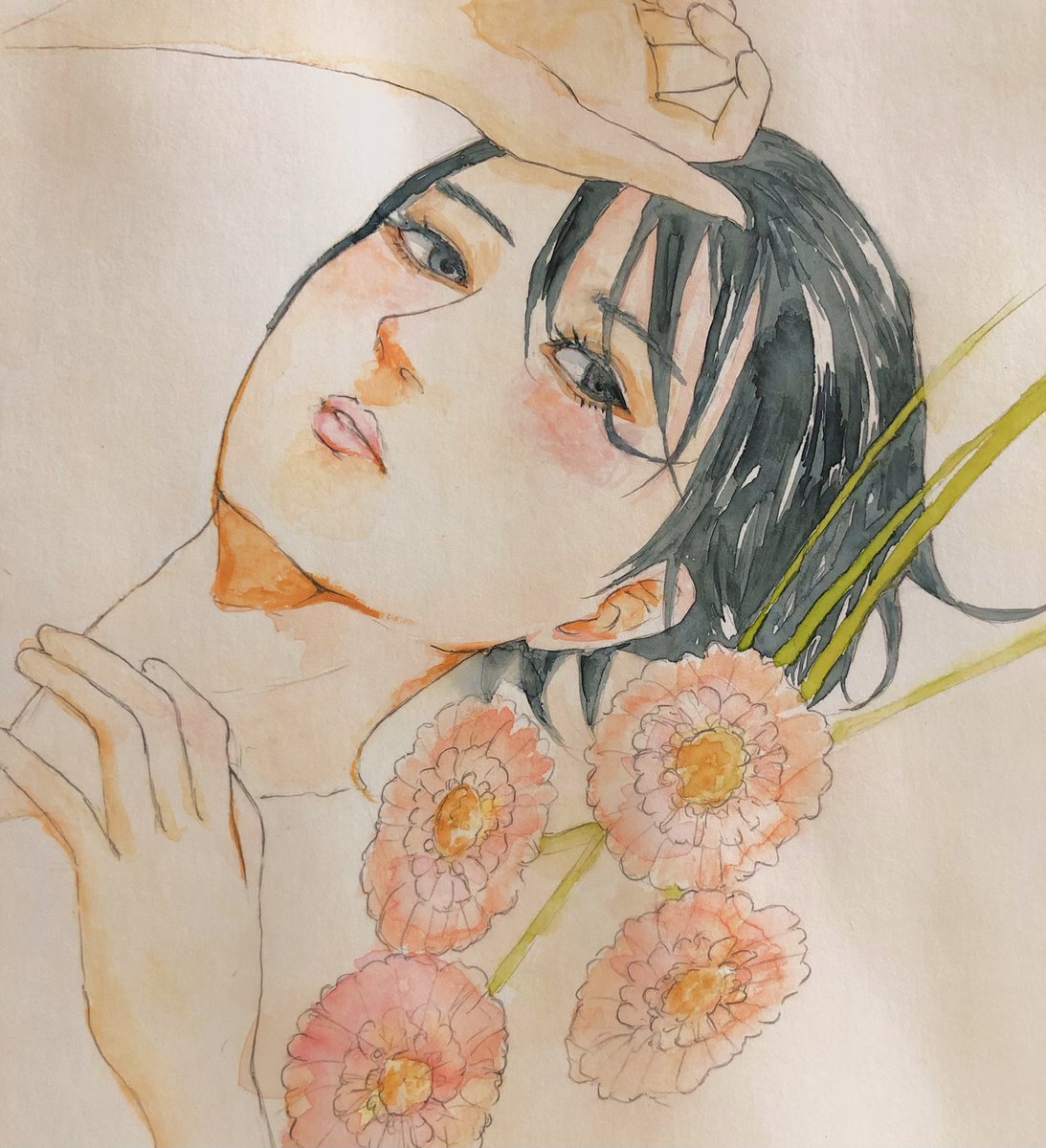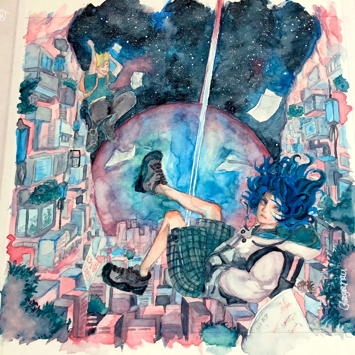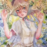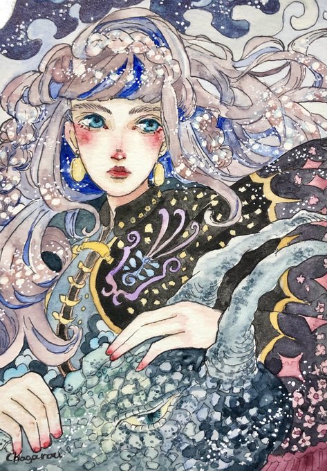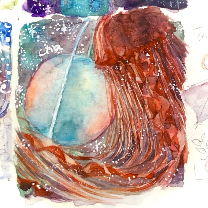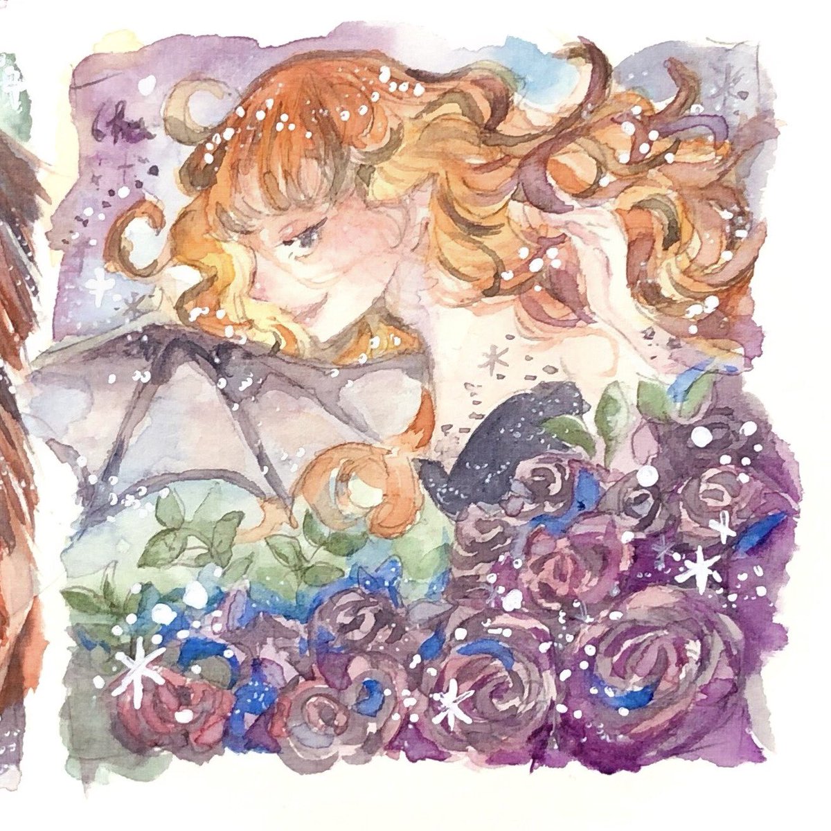 #画力変化ビフォーアフター 2021.6と2022.3(どちらも水彩) 左の絵は本当に全力で描いた思い出。でも何をどう描けばいいのかまったくわからず本当に悔しかったです。 来年には今の絵と比較できるくらい、今年もがんばりますー!