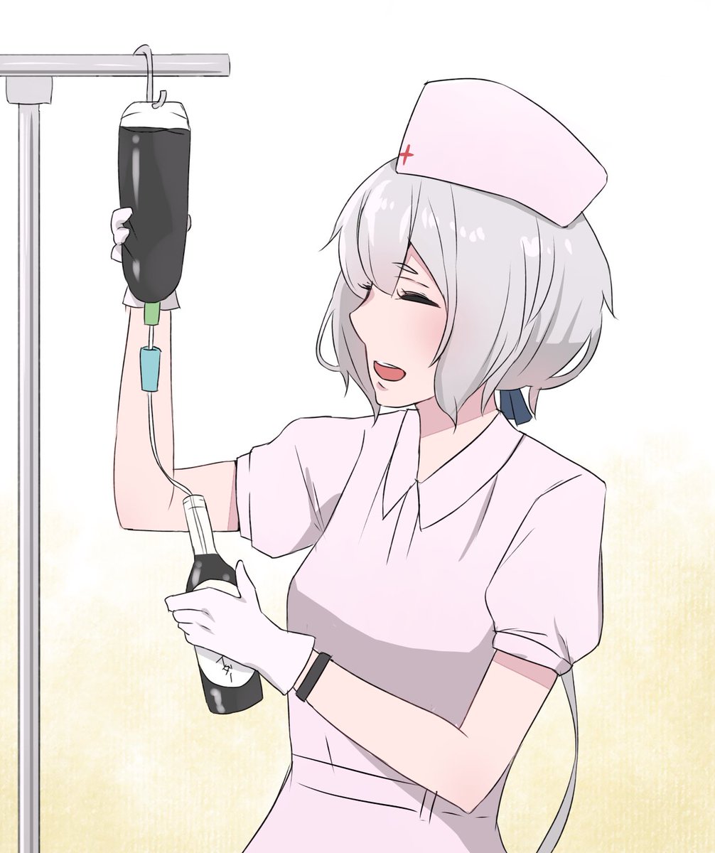 患者さんに笑顔で対応しながら点滴にイカスミサイダーを混入させようとする純子ナース お題「ナース」 #ゾンサガ版深夜の真剣お絵かき60分一本勝負