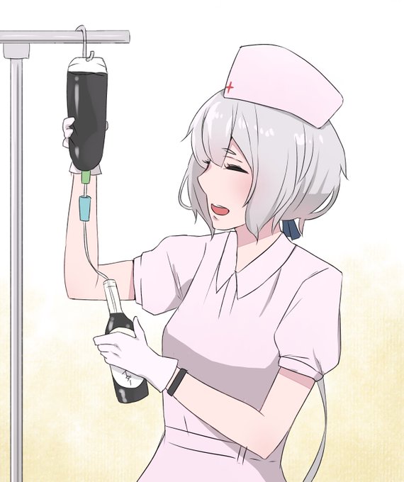 91 227 患者さんに笑顔で対応しながら点滴にイカスミサイダーを混入させようとする純子ナース お題「ナース」 #ゾンサガ版深夜の真剣お絵かき60分一本勝負 20/07/04 23:04