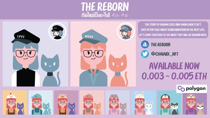 🌼New Drop🌼 ✨“THE REBORN เกิดใหม่เป็นอะไรดี” Collection✨ The story of Madam coco & Khon Kaen reborn👧🐱  👑8 Common (Polygon) 📌Opensea : opensea.io/collection/the… #NFT #NFTdrop #NFTTHAILAND #nftcollector #NFTart #NFTartist #NFTCommunity #NFTthai #NFTJapan #polygonNFT twitter.com/chaiaiix_nft/s…