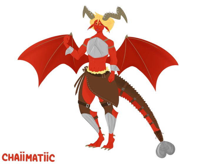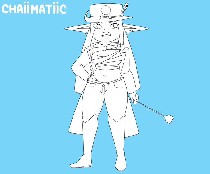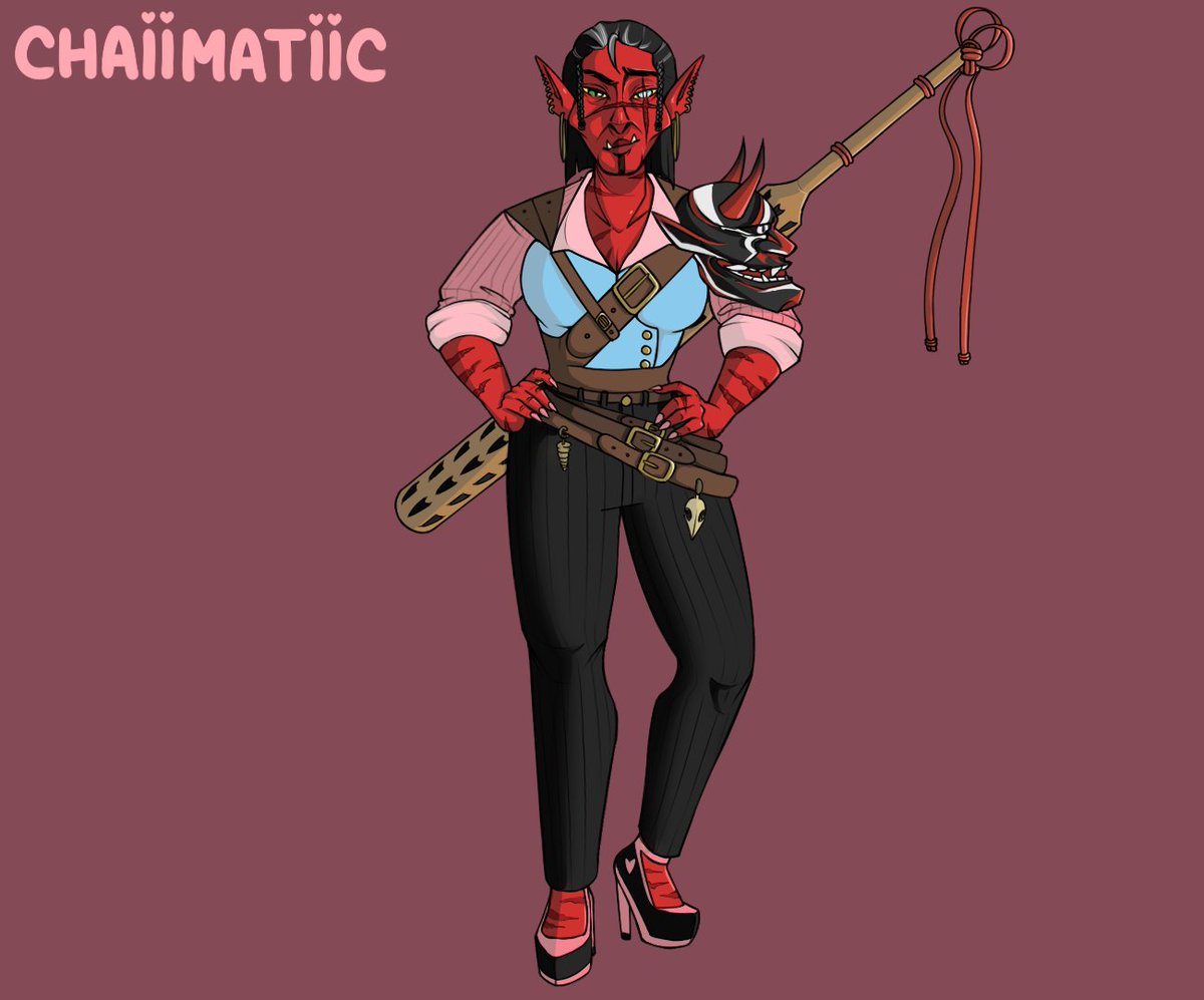 The big reveal.....HOBGOBLIN OWNER! She runs the tavern with all the little goblin maids and keeps things in check. The big weapon is mostly for show, mostly.. #dndart #dnd5e #DnDcharacter #fantasyart