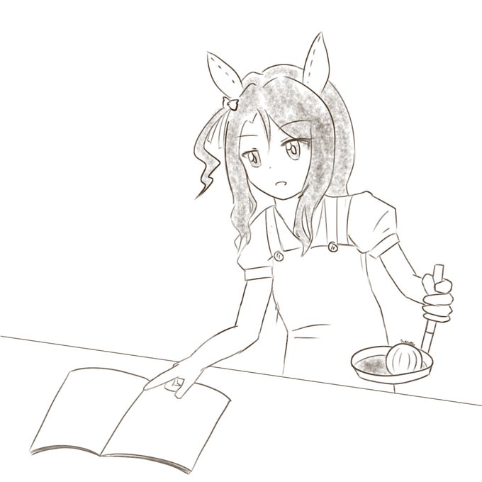 らくがき カツ丼を作る #クッキングヘイロー スカイ「切ってよ~!」 スペ「切んなきゃダメだよ~」 スカイ「玉ねぎの姿煮じゃないんだからさ!」 キング「だって書いてないわよ! 切るって~」