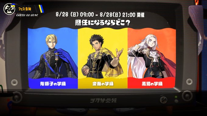 48 71 スプラ3とFE風花雪月のコラボでこんなフェスが開催されると見たね 22/08/11 00:00