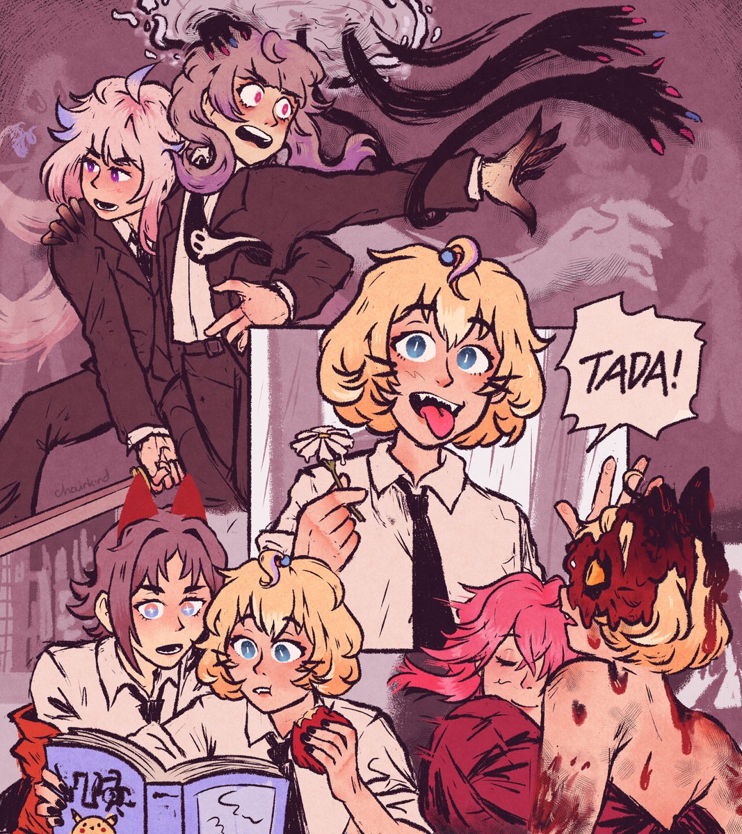 some csm au panel redraws & doodles i finally colored #GalleryOfRoses #MystArt #DrawMillie #Palouette #Reimural