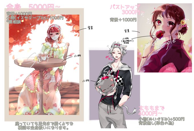 Twitter限定で1枚絵の依頼を受付します🙌✨ ▼納期は1~2週間ほど ▼お値段3000円〜 ▼お支払い方法 Amazonギフト券、PayPay ⚠️注意⚠️二次創作(夢絵)は受け付けておりません。 また、人数追加は1人あたり1500円〜です たくさんのご依頼お待ちしております☺️ #有償依頼 #有償イラスト #有償依頼受付中