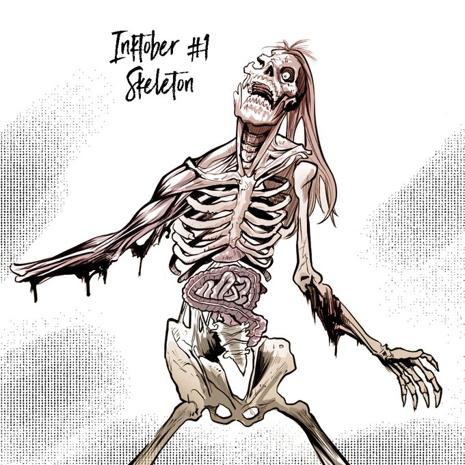 #inktober day1 of my Monster series - Skeleton #horrorart #illustration #painting #inktober2021 #inktober2021day1