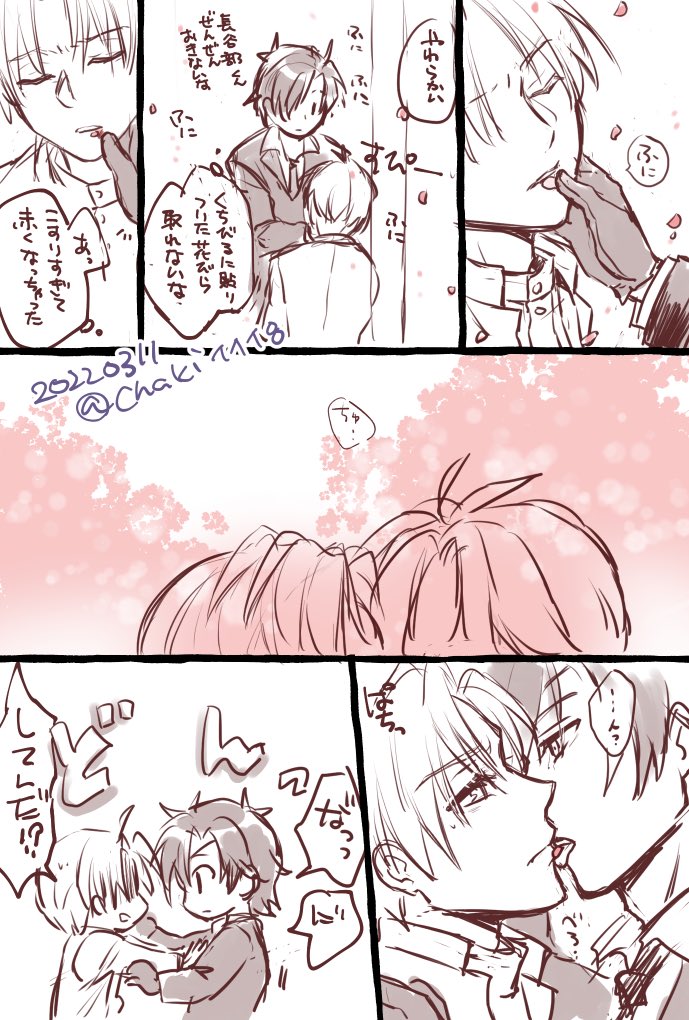 セリフ抜けがあったので上げなおしましたすみません #燭へしワンドロワンライ お題 【春】 燭「唇に張り付いた花びらを取ろうとしただけだよ?」 長「なぜ舐め取ったんだ????」 答え:燭へしだから