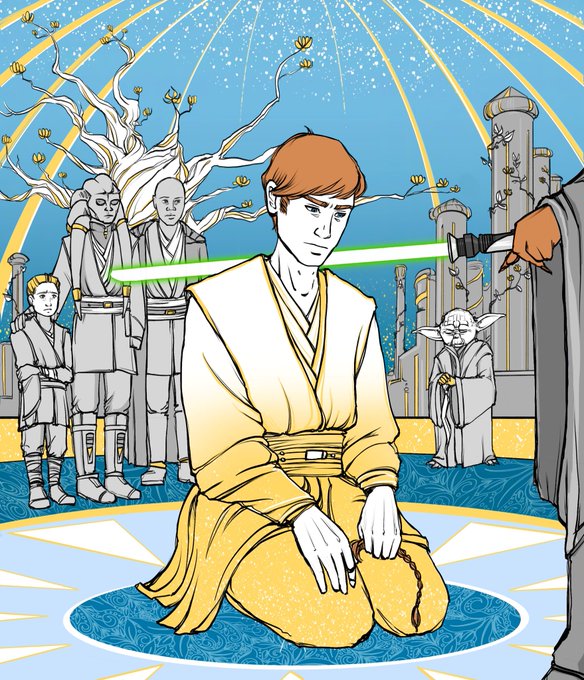 I have so many thoughts and headcanons about #obiwankenobi becoming a #jediknight ; I picture it with #plokoon knighting him and using #quigon ´s lightsaber at Obi Wan’s request. #starwars #StarWarsFanArt #starwarsart