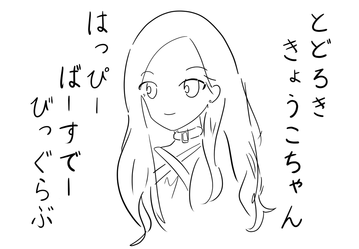 遅くなりましたが京子ちゃんお誕生日おめでとうございます 『とどろききょうこちゃん はっぴーばーすでー びっぐらぶ』のひらがなを使って描きました #クリエイツ轟京子
