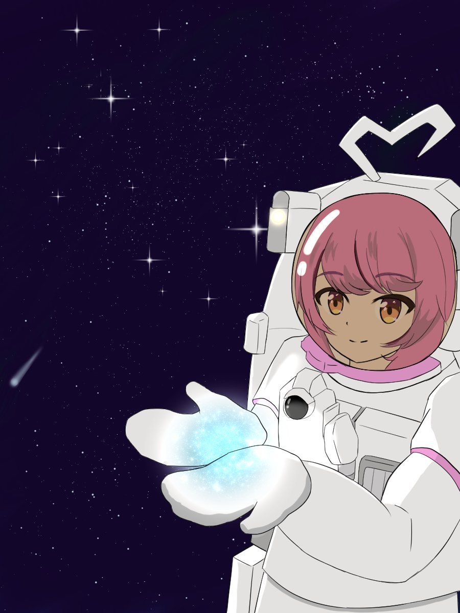 お誕生日おめでとうございます 誕生日感は薄めですが、最近宇宙の本買われてたのと 『もっとビッグな存在に』ってことでスケールのでっけえ感じにしました #おとあーと
